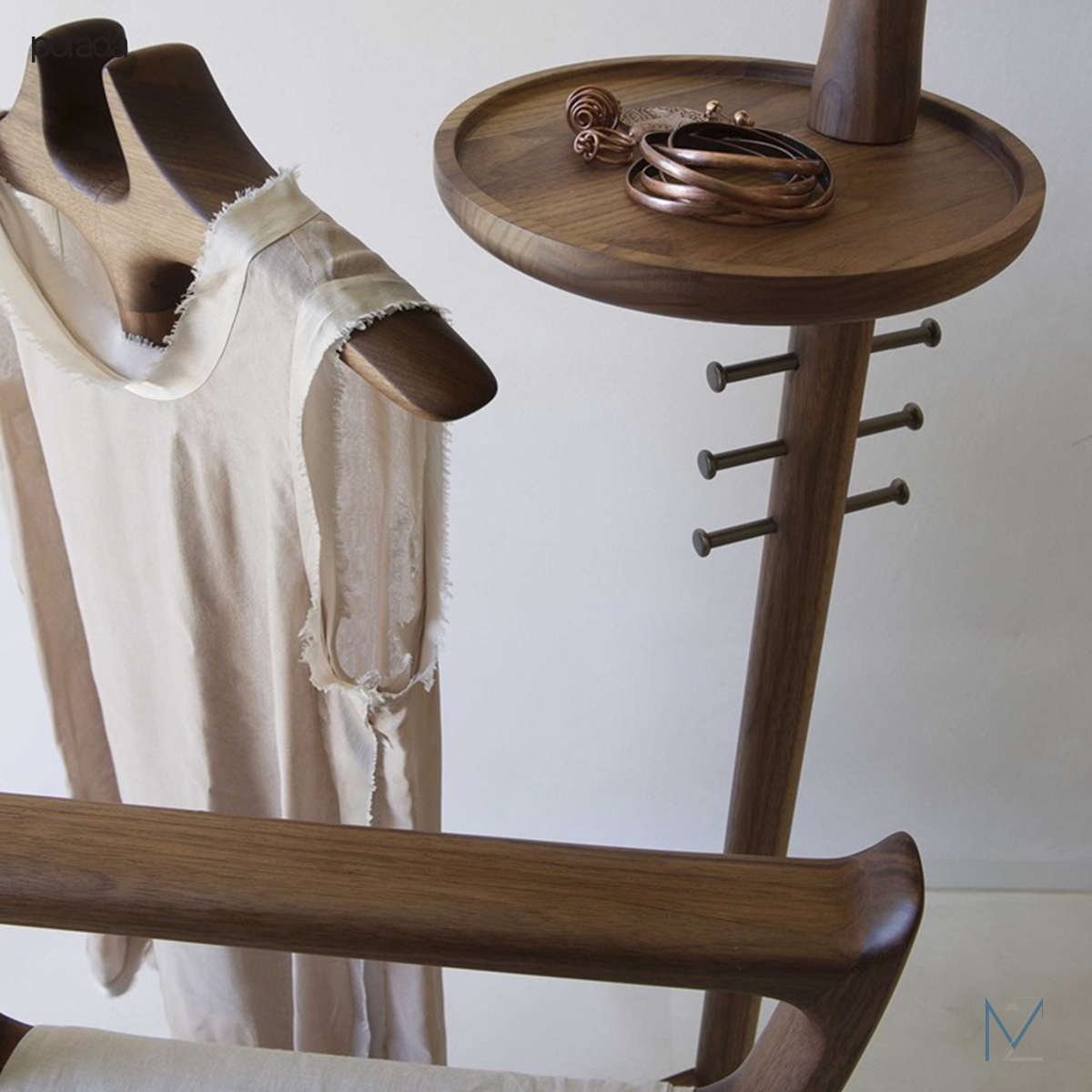 Sam è un servomuto progettato da Carlo Ballabio per Porada. Questo elegante oggetto di design è un esempio di funzionalità e bellezza. Elemento raffinato che mostra la sua essenza già dal materiale finemente utilizzato per crearlo, Sam è infatti interamente realizzato in massello di noce canaletta, il cui colore adorna di unicità qualunque stanza.