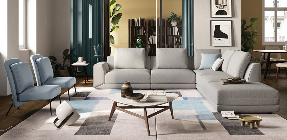 Angolare, due o più posti, moderno o classico, linee morbide in pelle o tessuto, con il colore giusto è il protagonista del living.